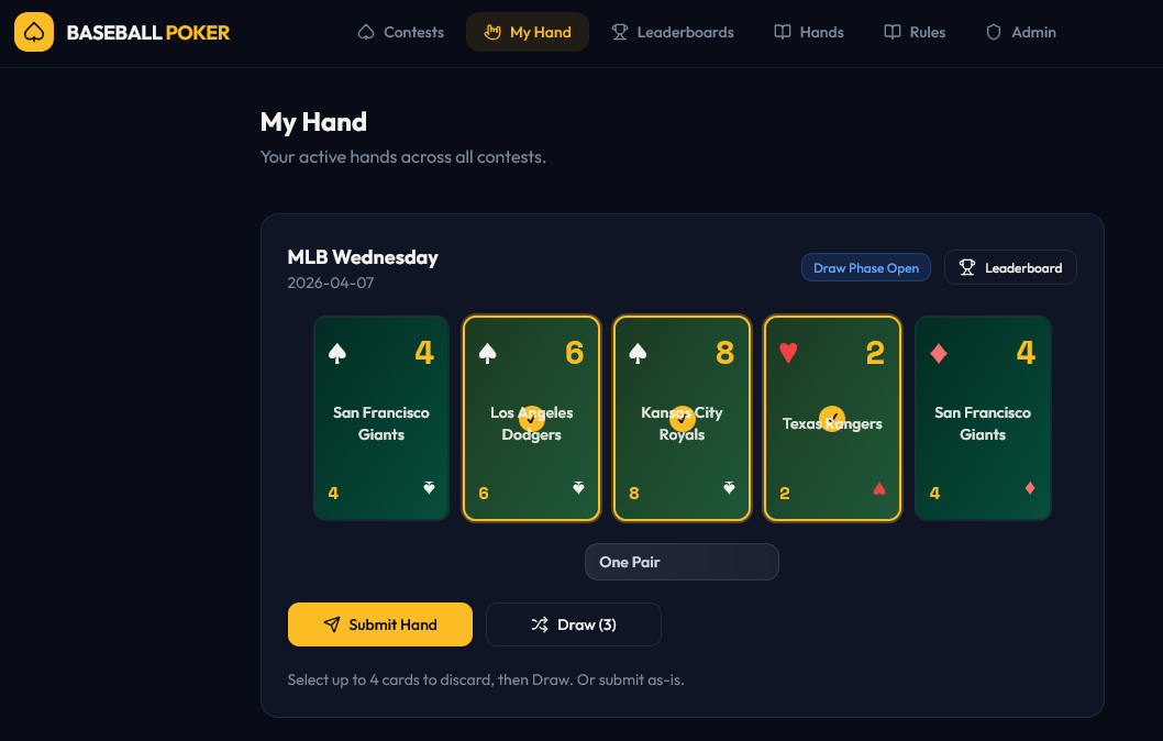 USER CAN NOW SELECT CARDS THEY WISH TO GET RID OF AND DRAW NEW CARDS