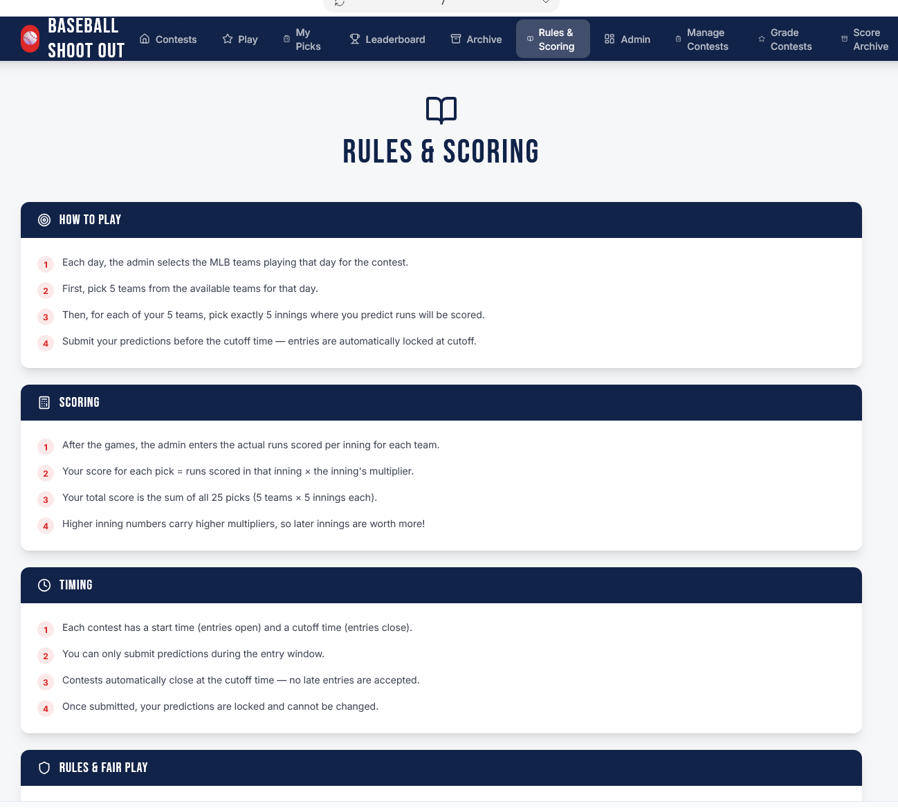 BASEBALL SHOOTOUT RULES AND SCORING