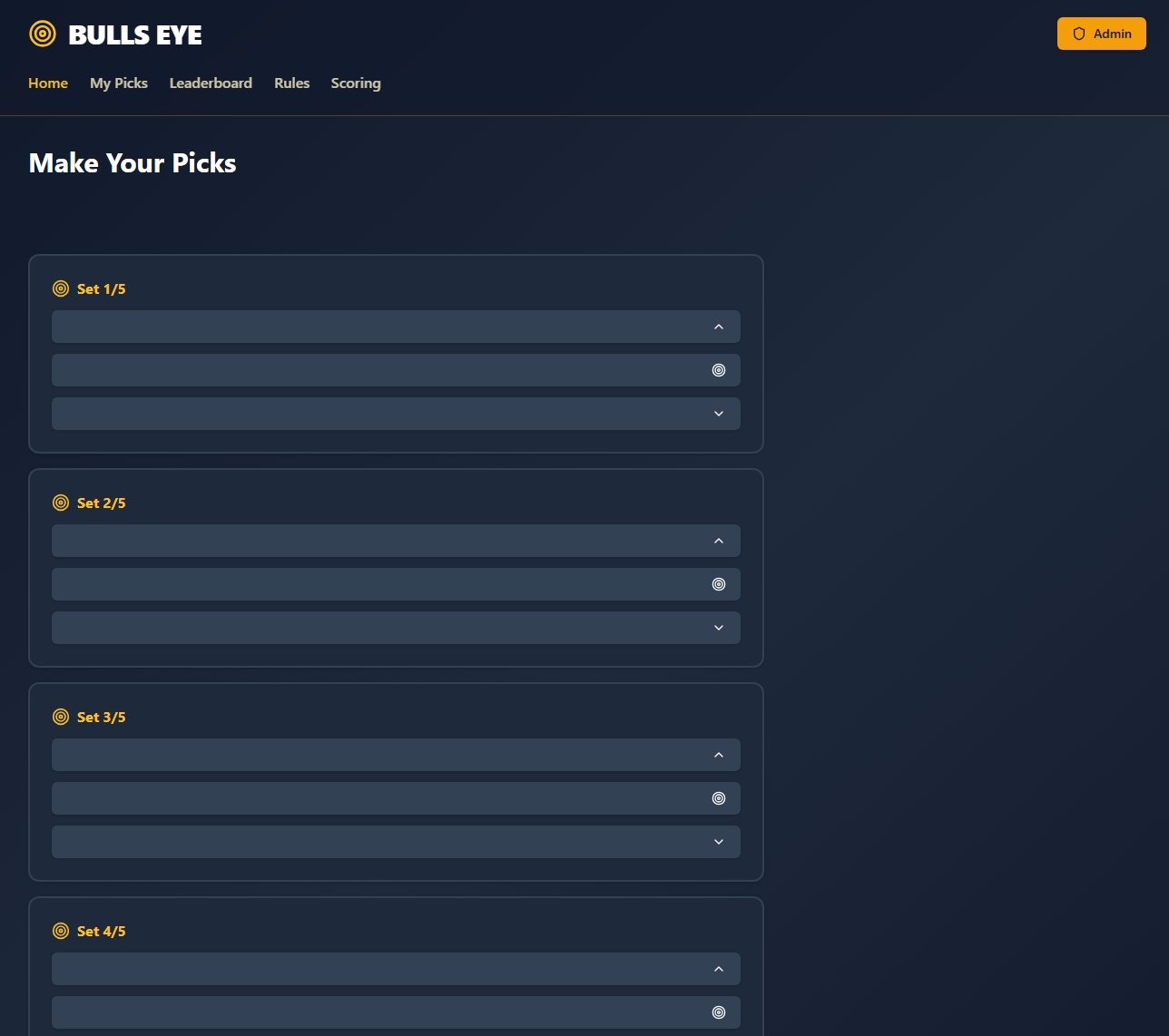 BULLSEYE HERE’S WHERE USERS SELECT THEIR TOP, MIDDLE AND LOW SCORING ENTRIES (A LIST OF ALL TEAMS IS SUPPLIED ON THIS PAGE) BACK NEXT HOME