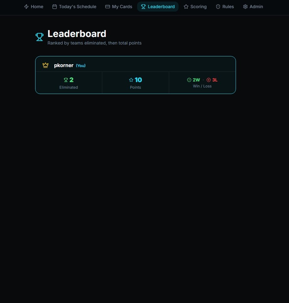 ELIMINATOR LEADERBOARD TO CHECK OUT WHERE USERS STAND AFTER FINALS ARE POSTED. LEADERBOARD TRACKS BOTH POINTS AND WINS/LOSSES BACK NEXT HOME