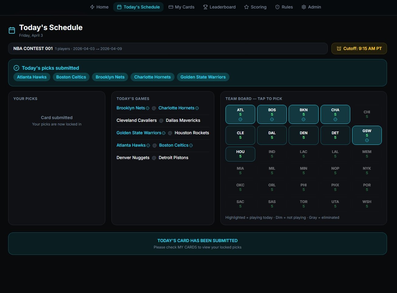 WHEN THE CARD IS SUBMITTED, SELECTIONS ARE FINAL