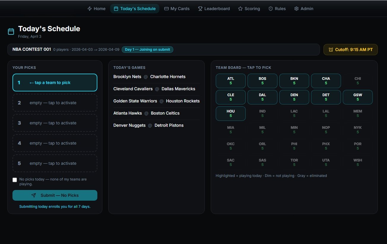 USER NOW BEGINS THE PROCESS. TAP ON THE EMPTY BOX, TAP ON A TEAM THATS HIGHLIGHTED