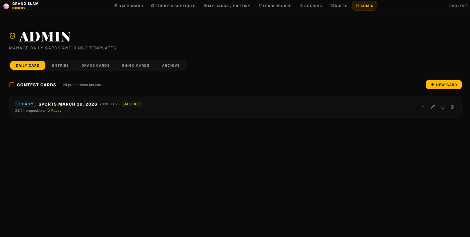 DAILY CARD IS THE STARTING POINT FOR CREATING A NEW CONTEST