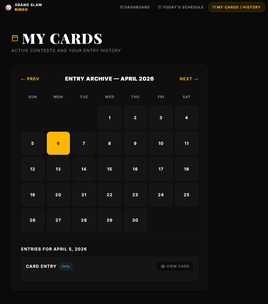 USER CHECKS INTO MY CARDS TO SEE HIS PICKS AND RESULTS WHEN AVAILABLE