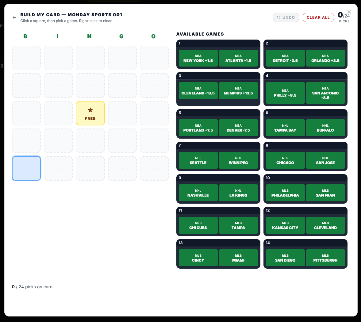 START ANYWHERE. PICK A BOX THEN PICK A TEAM TO FILL IT